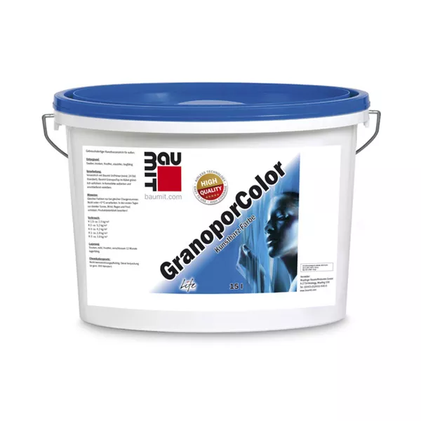 Baumit GranoporColor este o vopsea acrilică decorativă, respirabilă și rezistentă la intemperii, destinată pentru finisarea fațadelor. Produsul oferă protecție pe termen lung împotriva mucegaiului și a murdăriei, asigurând în același timp un aspect estetic plăcut și uniform.